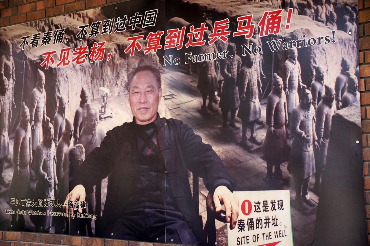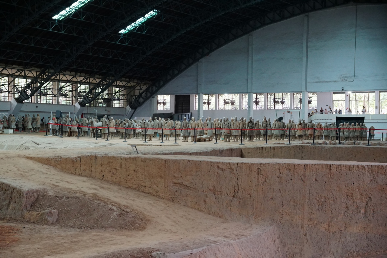 Es begab sich im Jahre des Herrn 1974, das die Gebrüder Yang, Bauern ihres Zeichens, auf ihrem Land einen Brunnen bohren wollten und dabei auf große merkwürdige Scherben stießen. Umfangreiche Grabungen auf einem riesigen Areal wurden seitdem getätigt und tausende Soldaten, Pferde und Streitwagen freigelegt, die man zunächst noch unter Verschluß hielt, aber nach Mao`s Tod wurden im Jahre 1979 die ersten Funde der Öffentlichkeit zugänglich gemacht. Heute kann man drei Ausgrabungen mit etwa 6.000 Objekten besichtigen, wie viele weitere noch vom Erdreich und den Chinesen verborgen werden, wissen, wenn überhaupt nur ein paar wenige.