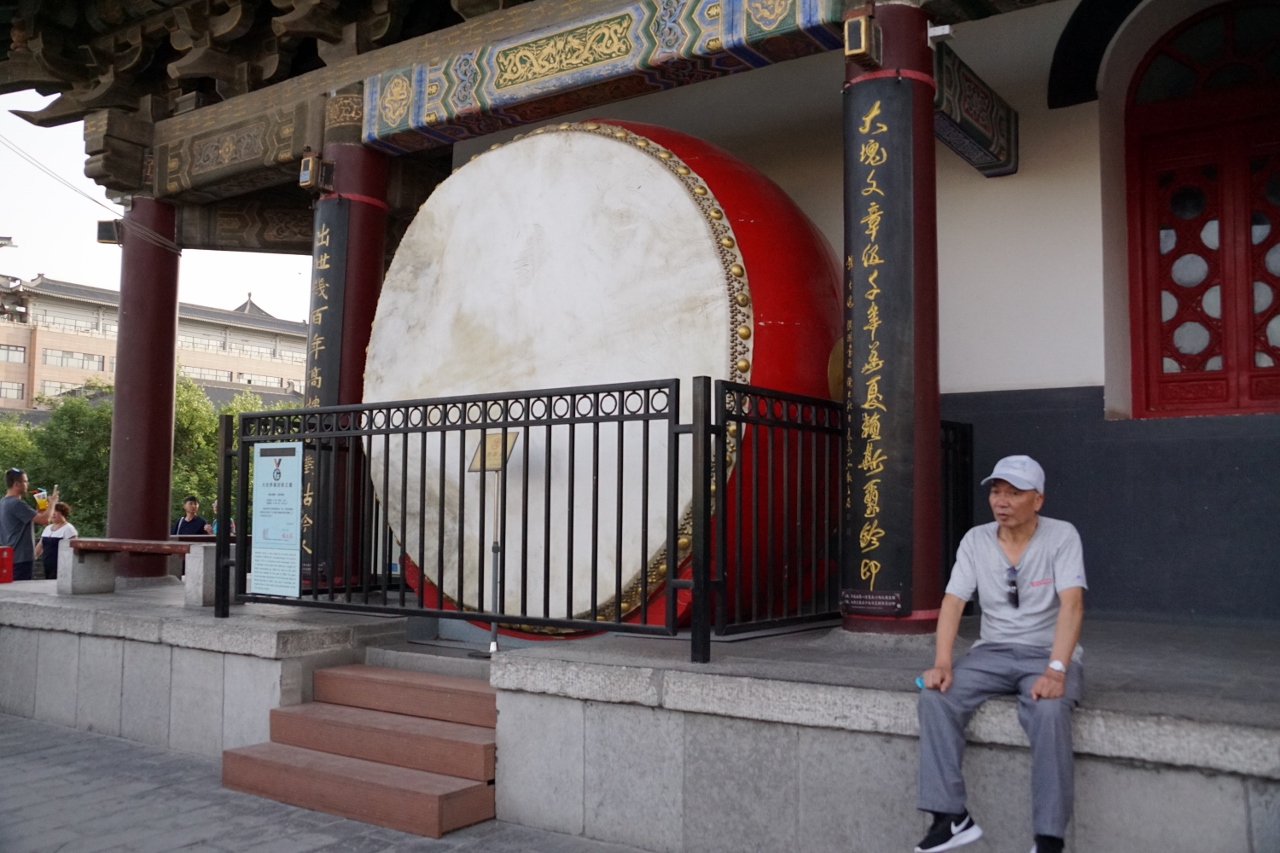 Nach der Rückkehr nach Xi`an legen wir erst mal eine Siesta ein, da es in der Stadt schon wieder brütend heiß ist. Gegen vier starten wir noch einmal und besichtigen den Bell Tower und den Drum Tower. Beide pagodenförmigen Bauwerke dienten dazu, mittels ihrer jeweiligen Instrumente die Zeit anzuzeigen, ob gemeinsam oder konkurrierend konnten wir nicht herausfinden.