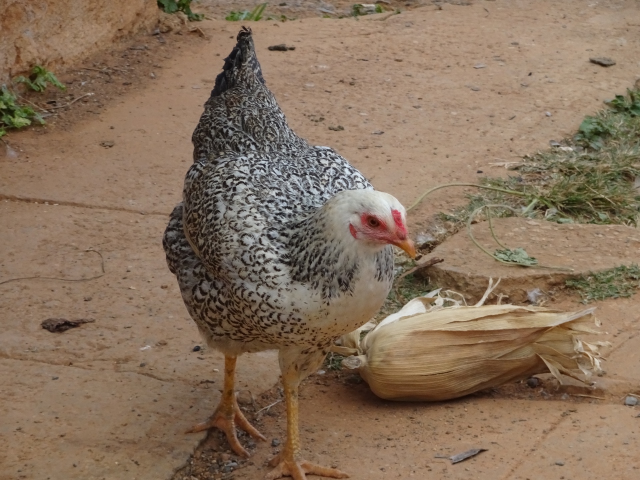 gehört, aber jeden Tag pünktlich den Hahnenschrei; je nach dessen Lust und Laune auch