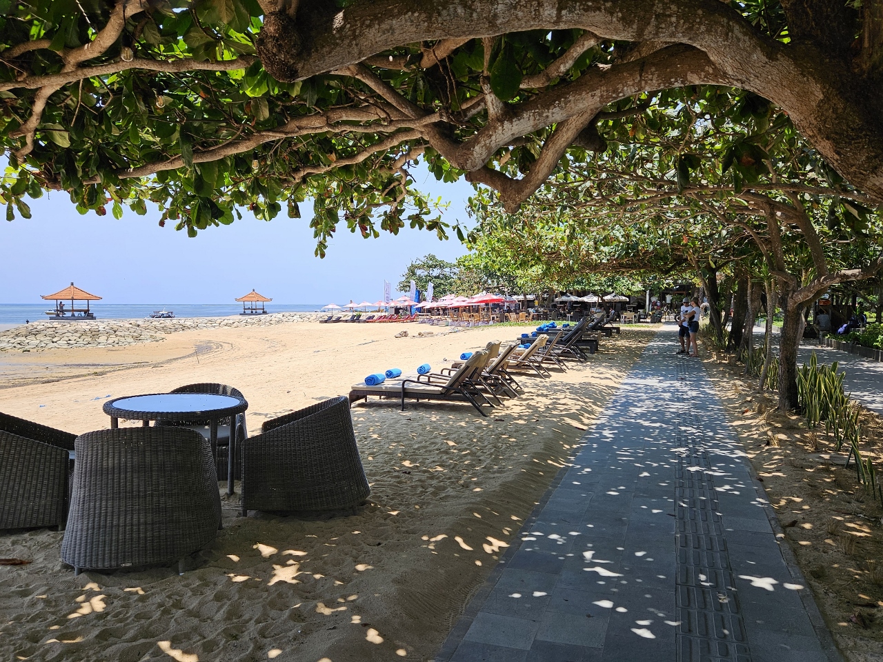 Hier in Sanur haben wir das einzige Mal eine Strandpromenade und