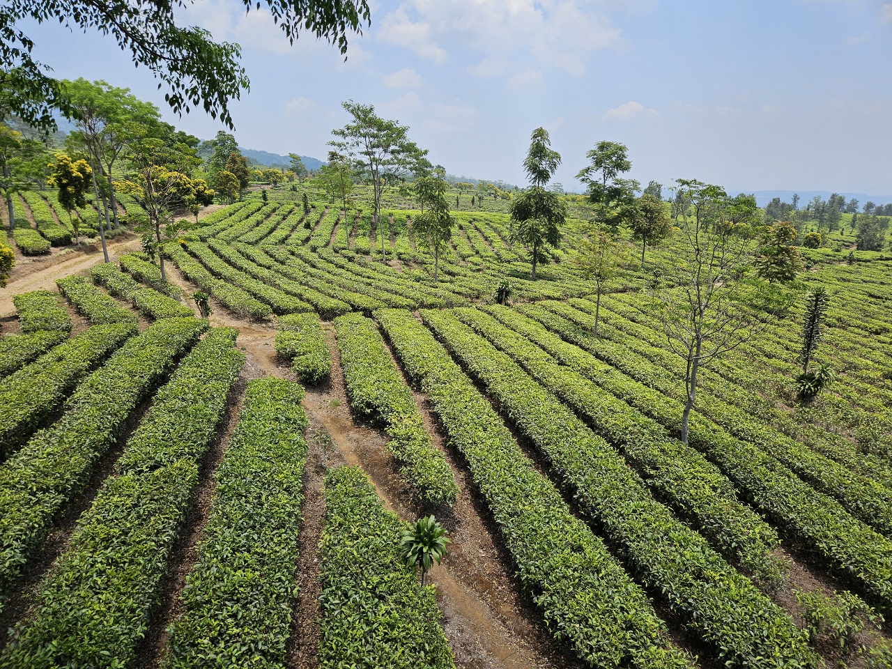 Nach einiger Zeit kommen wir im Teeanbaugebiet an. Weit