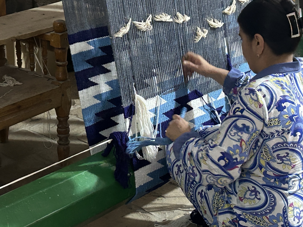 als sie uns etwas zeigen möchte, zieht sie einen dieser