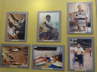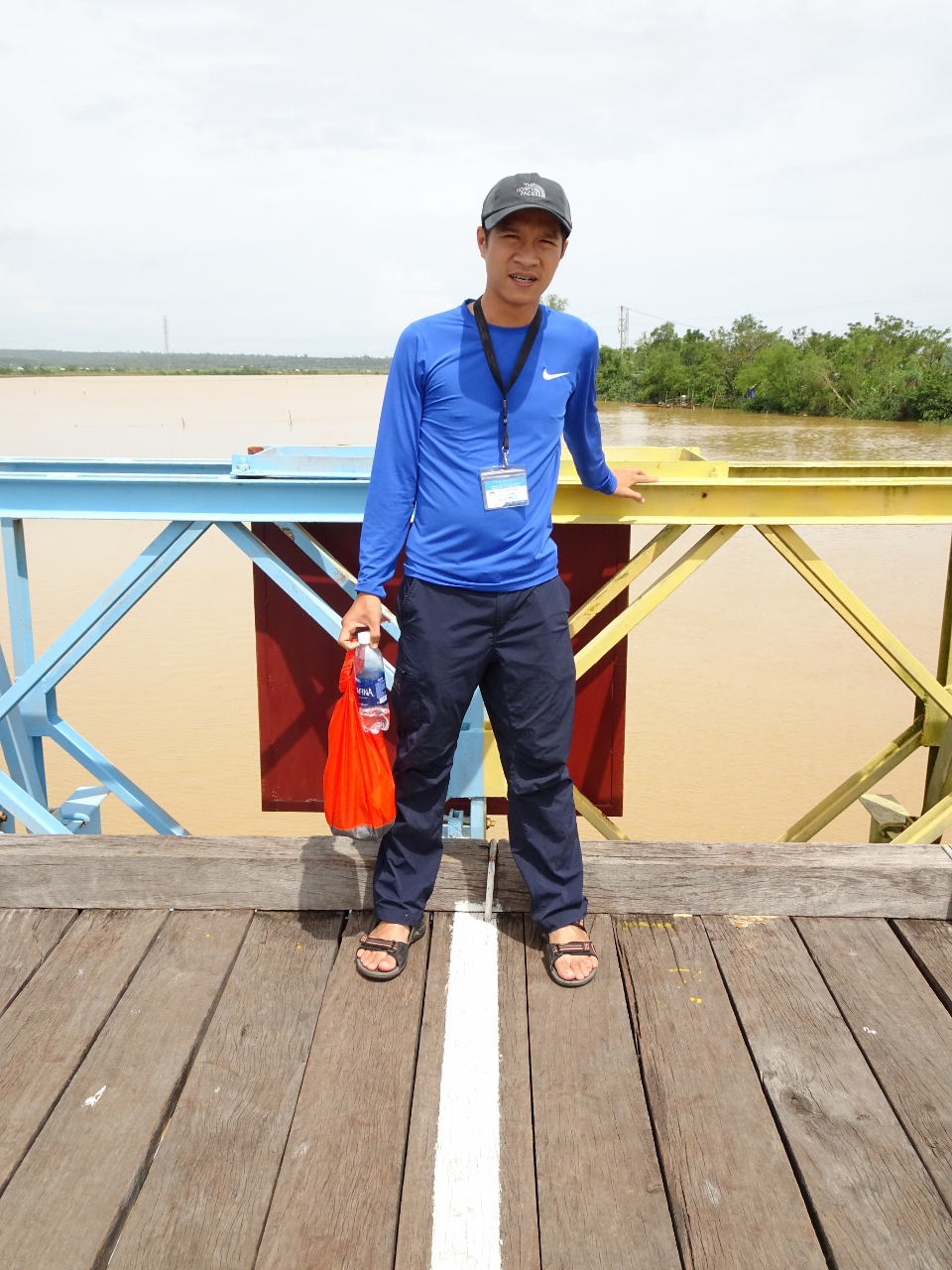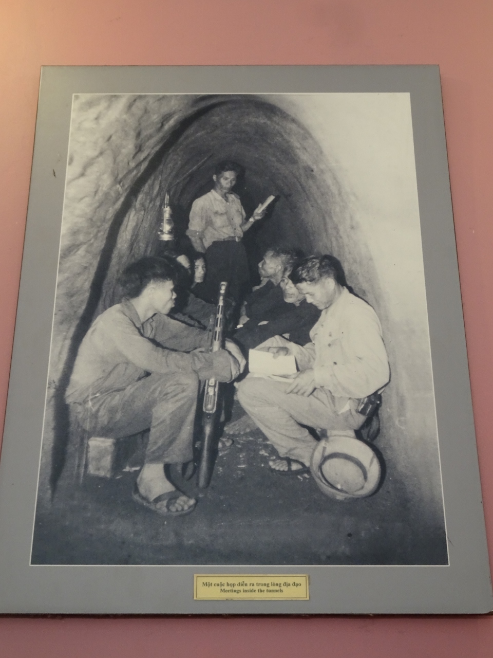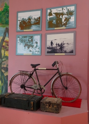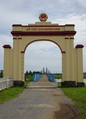 Wir gehen zu Fuß über die Brücke, die bis zur Hälfte hellblau, der Farbe der Vietkong gestrichen ist und auf der anderen Seite gelb, der Farbe des damaligen Südvietnams.