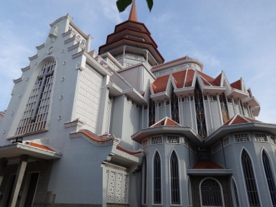Tony zeigt uns dann die größte katholische Kirche Vietnams, wohl weil wir ihn in Phong Nha gefragt hatten, ob wir eine der kleinen putzigen Kirchen dort besichtigen könnten, aber die waren natürlich alle zu, wegen der aufkommenden Flut.