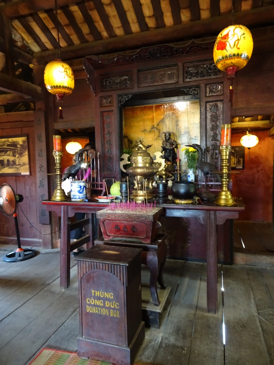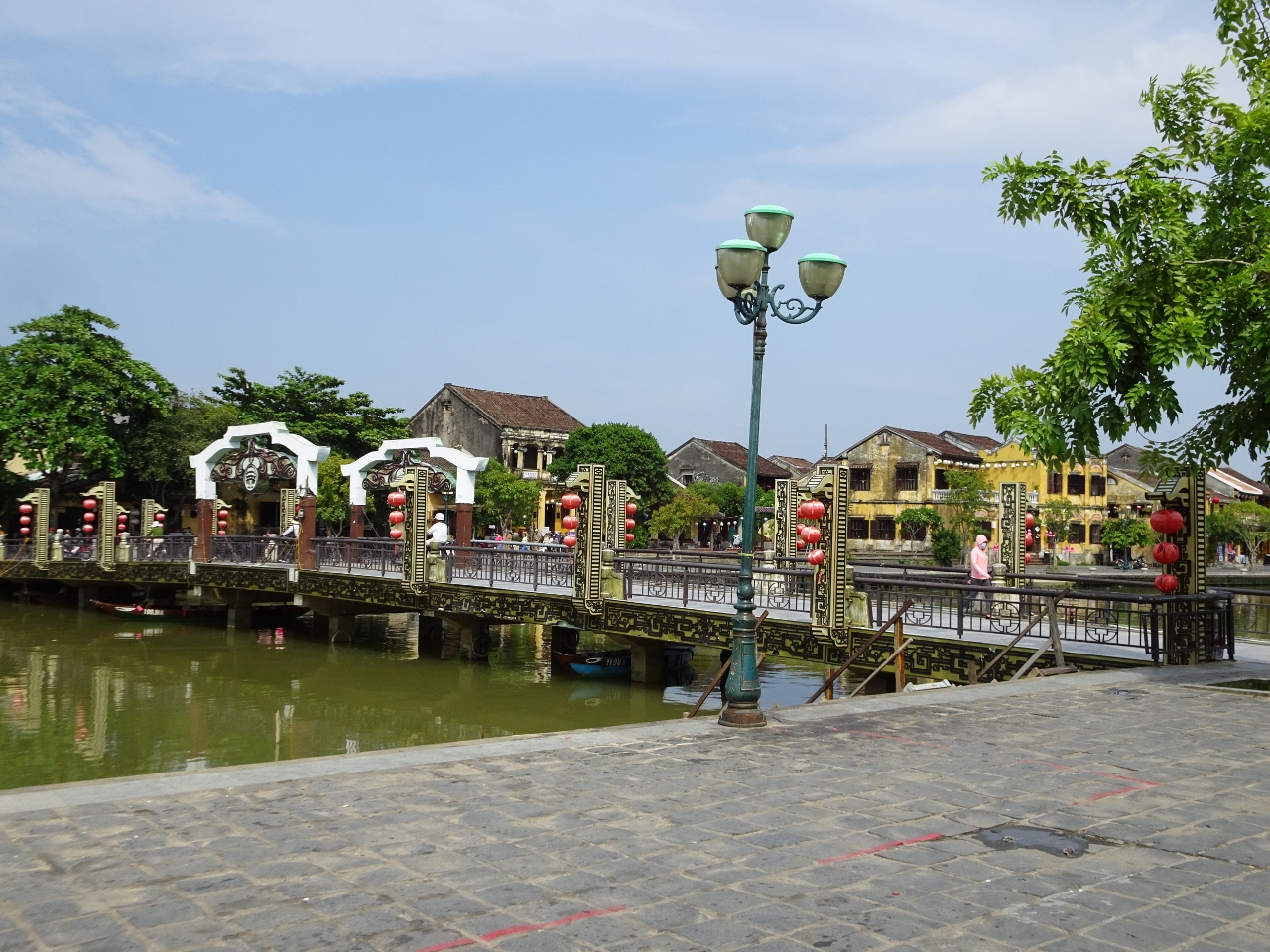 An unserem dritten Tag in Hoi An überlegen wir zunächst ob wir uns Fahrräder ausleihen sollen, aber irgendwie habe ich dazu keine rechte Lust. Wir schlendern also wieder ganz gemütlich to the old town und besichtigen einige der ausgewiesenen Kulturstätten wie z. B. die überdachte japanische Brücke, Handelshäuser und eine budistische Anlage. Eigentlich müsste man für all diese historisch bedeutsamen Bauten Eintritt zahlen, aber in unseren "Tickets" ist bereits der Eintritt für fünf dieser Gebäude enthalten. Bei manchen Bauwerken wird am Ticket ein Schnippsel abgeschnitten, bei anderen reicht es die Tickets vorzuzeigen. Welches Prinzip dahintersteckt - keine Ahnung.