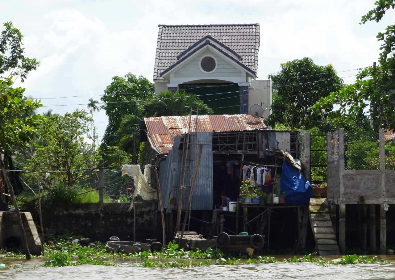 Dorf im Mekong Delta, es werden Jackfruits angebaut, ziemlich
