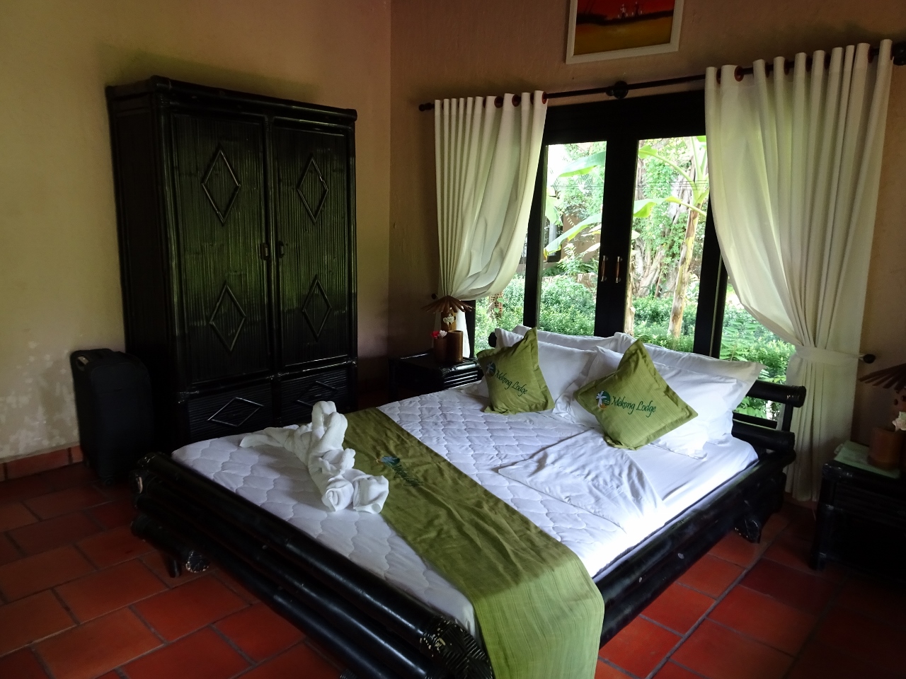 ziemlich abgelegen direkt am Fluss. Wir checken kurz ein und