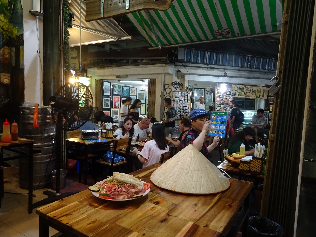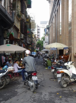 Als wir dann nach einem kleinen Imbiss unser Zimmer beziehen, sind wir doch sehr angetan, da gibt`s mal gar nix auszusetzen. Wir ruhen ein paar Stündchen, schließlich fehlt uns ja eine ganze Nacht um dann am frühen Abend wieder loszuziehen, ins Handwerkerviertel von Alt-Hanoi, wo es dann Abendessen und ein paar Getränke in der schwülen Abendluft gibt.