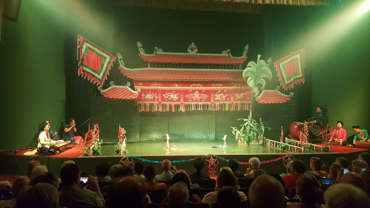 Gestern Abend stand ein Besuch des Wasserpuppen-Theaters auf dem Programm. Anscheinend ein Muss für jeden Touristen, jedenfalls war die Vorstellung ausverkauft.