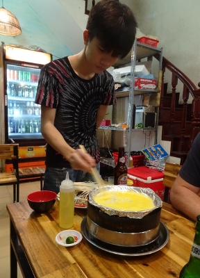 Hat man den See vor unserem Hotel halb umrundet kommt man sogleich in die Altstadt von Hanoi. Diese ist ein bunter Mix aus Wohnhäusern, Baracken, Tempeln, Garküchen, Verkaufsläden, Bars und Restaurants und dazwischen immer wieder kleine noble Boutique-Hotels. Die vielen verschiedenen Eindrücke sind atemberaubend. Das wir uns in einem kommunistischen Land befinden merkt man nicht. Zwischen all den Mopeds sieht man auch immer wieder Luxusautos (Mercedes SEL, Porsche Cayenne etc.); Fahrräder sieht man nur vereinzelt. Auch scheint jeder Einwohner ein Handy zu besitzen und Moped oder Auto zu fahren und gleichzeitig zu telefonieren scheint hier nicht verboten zu sein. Vielleicht verhält sich das aber auch wie mit den roten Ampeln.