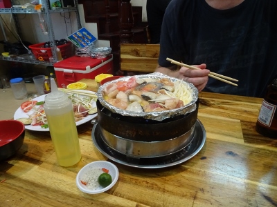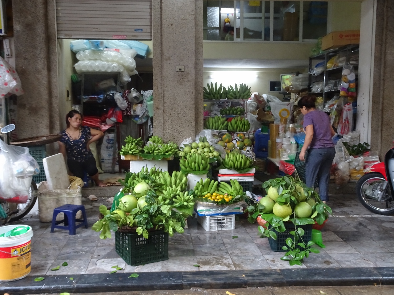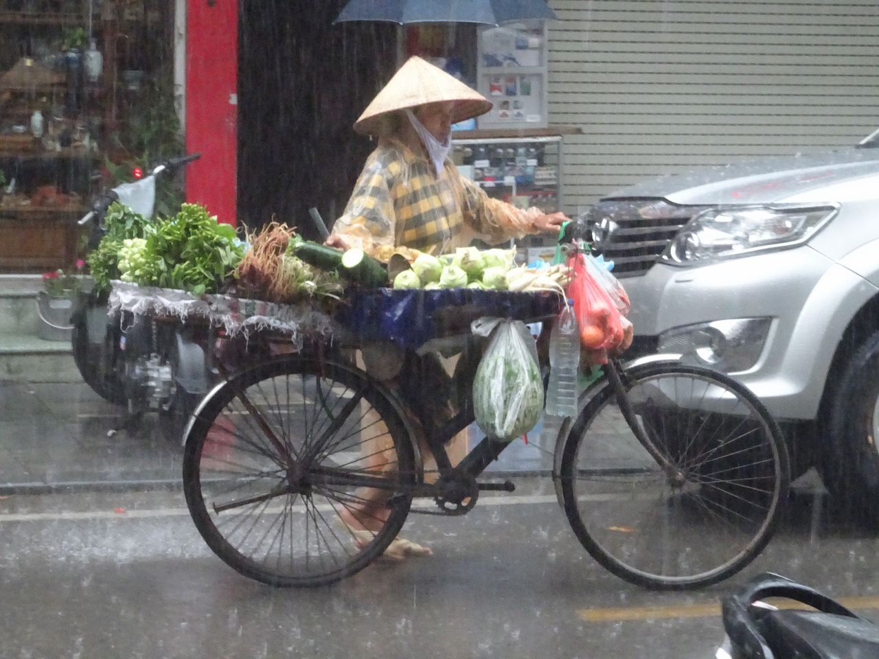 Irgendwie habe ich das Gefühl, hier ist alles ein bißchen extrem. Die Menschenmassen, die Luftfeuchtigkeit, die Mengen an Waren und ganz besonders natürlich auch der Regen. Er beginnt von einer Minute auf die andere und zwar nicht erst tröpfchenweise, sondern gleich sintflutartig.