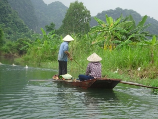 Tam Coc, wo wir übernachten werden. Der Ort scheint voll auf