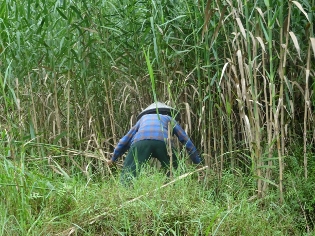 mittlerweile Reisfelder und auch die dazugehörigen Bauern, die