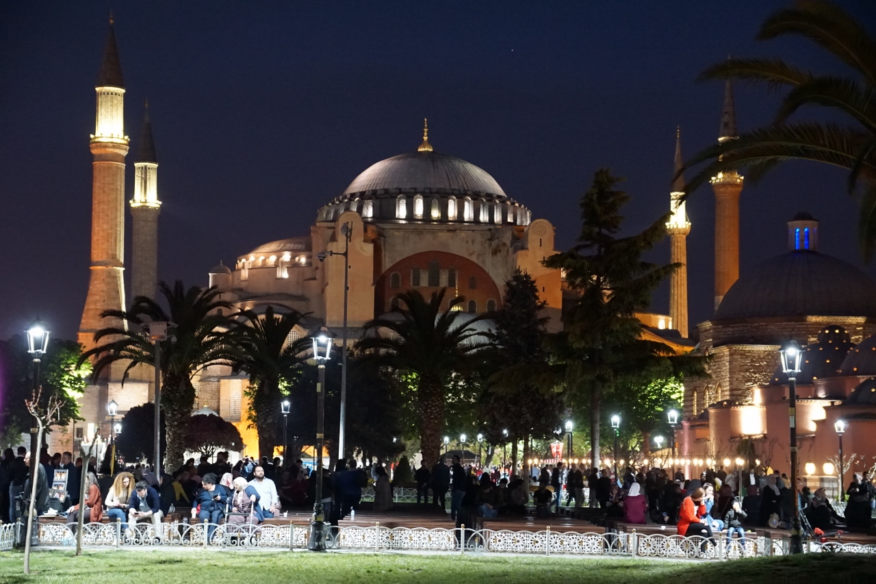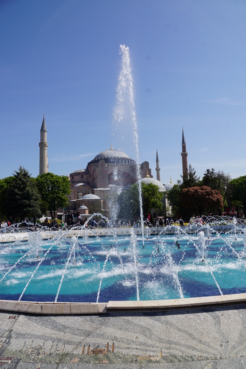 reinzugehen fällt uns nicht ein, die Schlangen sind endlos. Sowohl vor der Hagia Sophia, als auch vor dem Topkapi Palace müsste man Stunden anstehen, dazu