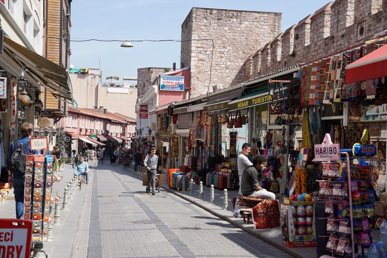 Istanbuls machen. Wir gehen aus dem Hotel, etwa 100 Meter weit und sehen gefühlt eine Million Leute. Touristenbusse zwängen sich durch die engen Gassen und