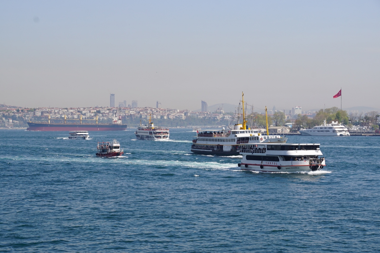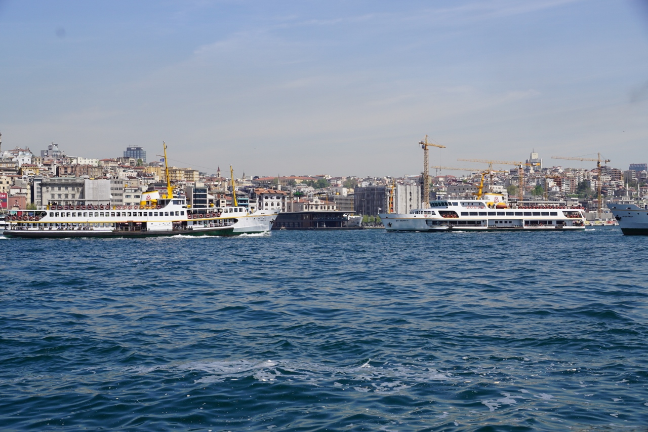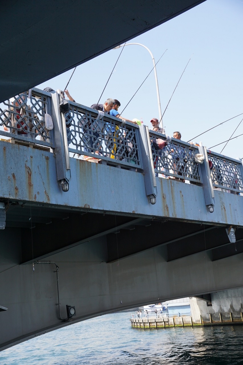 ganze Weile die Angler auf der Galata Brücke und die Unmengen Schiffe und Boote auf dem Wasser. Was für ein Gewusel und was für Abgaswolken. Die hier