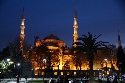 erreichen. Plötzlich sind wir dann am Wasser und während wir auf einer Brücke den Bosporus überqueren taucht vor uns hell erleuchtet eine Moschee auf.