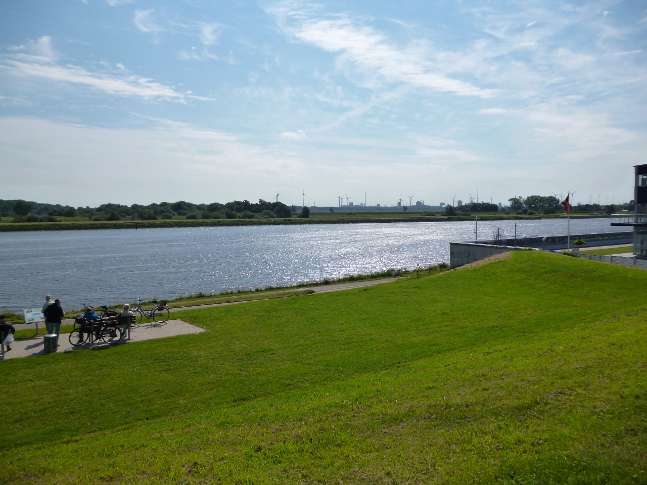Schafen hindurch bis fast an die Mündung nach Nordenham. Bis auf einen unwetterartigen Schauer, den wir uns aber aus einem Bushäuschen heraus anschauten, blieb uns das