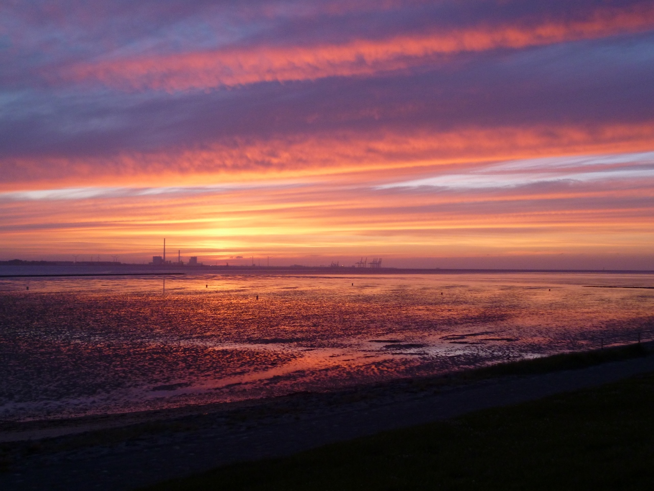 werden wir noch mit einem abendroten Himmel über der Nordsee belohnt. Was will man mehr. Gute Nacht!