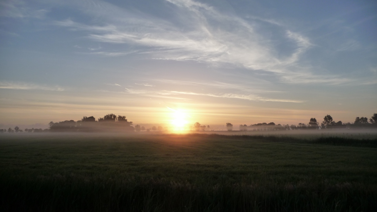 Aber, wie sagt der Volksmund so schön, “Morgenstund hat Gold im Mund”; der Tag beginnt mit Frühnebel und einem traumhaft schönen Sonnenaufgang. Das ist wohl der
