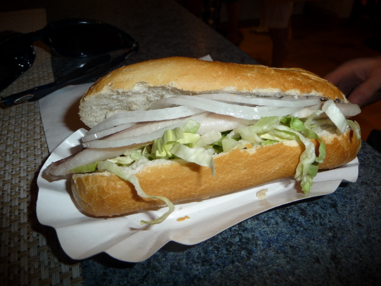 anderes verspricht – besonders lange zu trocken. Schietwetter, da lassen wir uns erst mal ein Fischbrötchen schmecken.