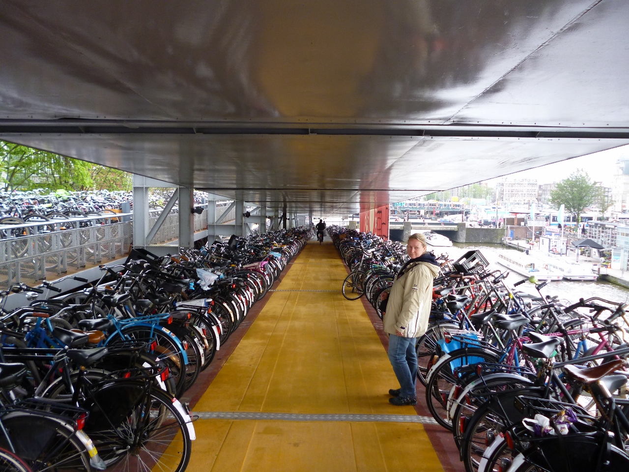 hinterher die Tür wieder zu öffnen ist. Dann bringen wir unsere Räder zum “Fietsparkeren op Stationseiland Amsterdam Central” , also ins Fahrradparkhaus und wir drehen noch mal eine