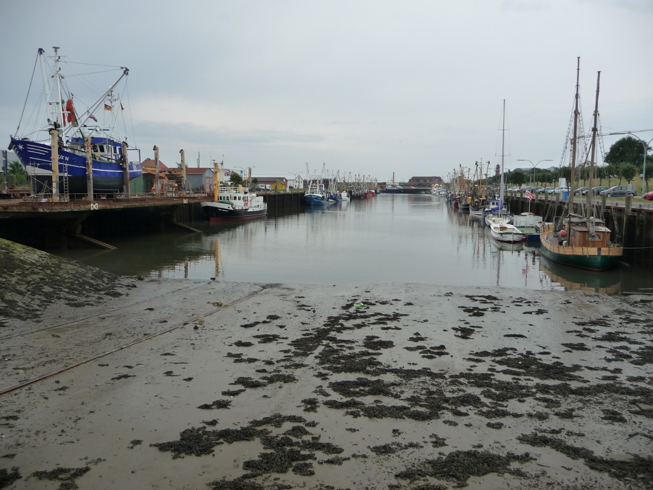 Als wir in Büsum angekommen sind herrschte mal wieder Ebbe; heute ist Flut und der Unterschied ist hier im Hafen deutlich zu sehen.