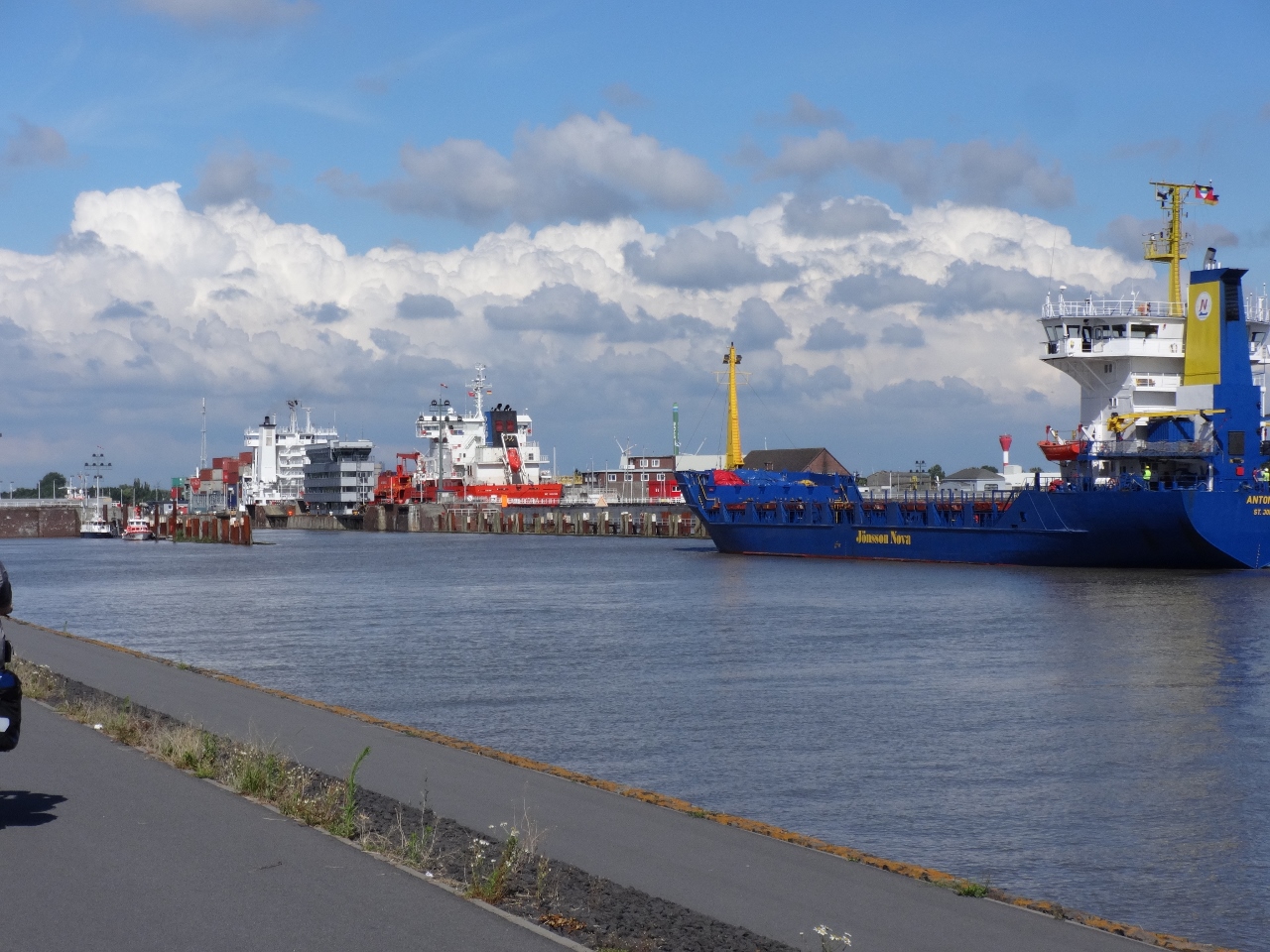 wir uns bereits im Mündungsbereich der Elbe und sehen die ersten Containerschiff-Monster. Wenig später erreichen wir Neufeld, ein schönes
