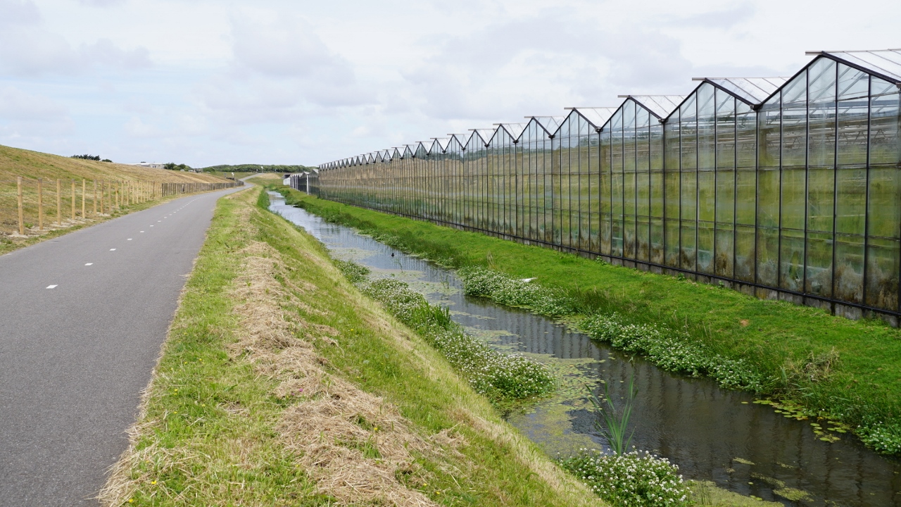 aber der Nordseeküstenradweg ist natürlich nicht der kürzeste. Unser Weg führt uns wieder durch Dünenlandschaft und entlang an endlosen Gewächshäusern; irgendwo