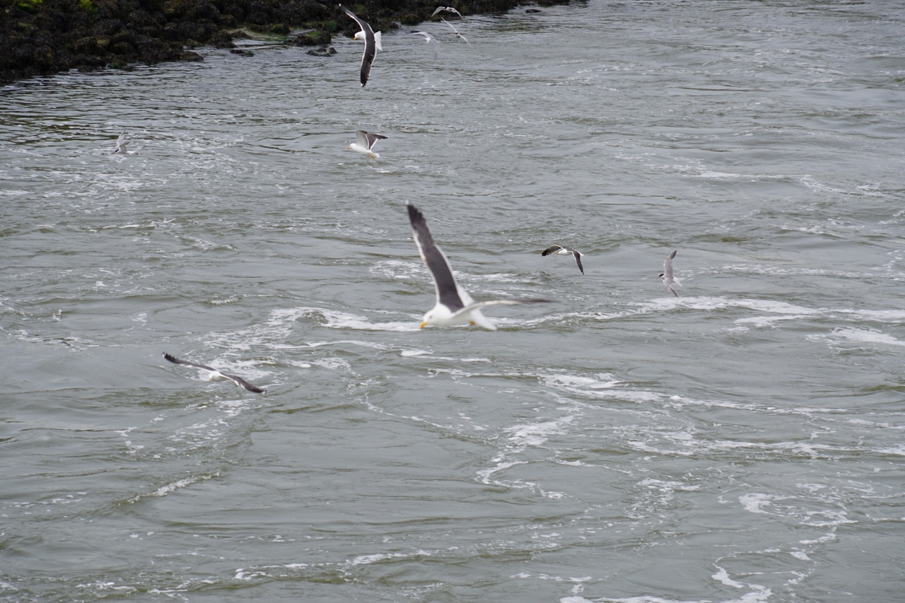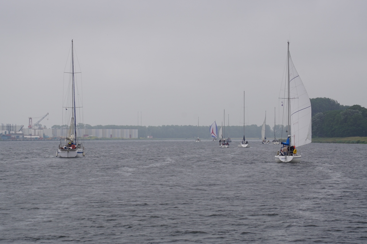 und es nieselt ganz leicht. Dennoch fahren wir los in Richtung Norden mit dem Wind von links hinten oder von der Seite, aber nur noch ganz selten direkt