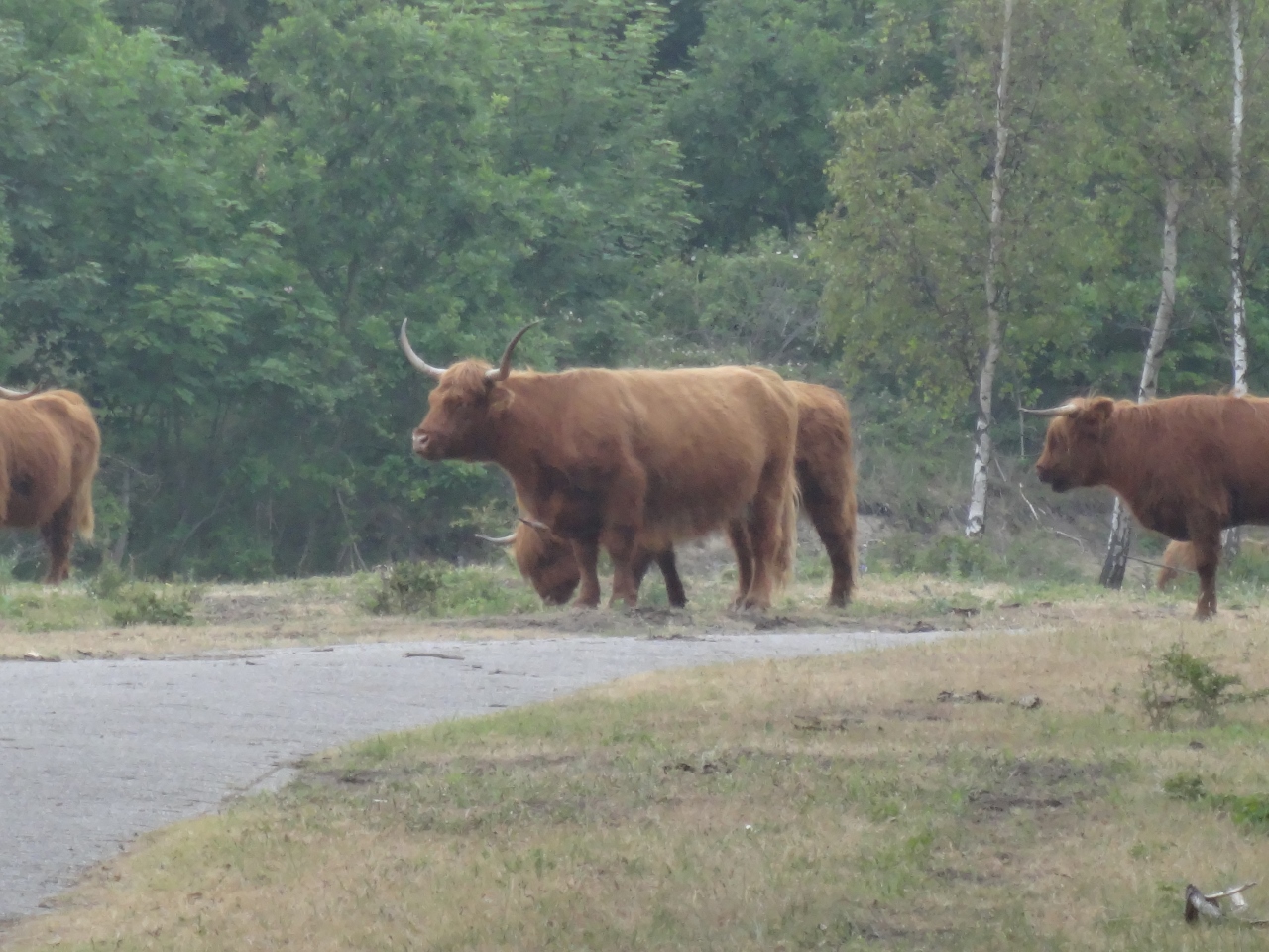 Die Viecher sind Wisente, die hier in großen Herden frei leben. Zwar durch Gitterroste und Zäune daran gehindert, auf die Straßen zu laufen aber ansonsten