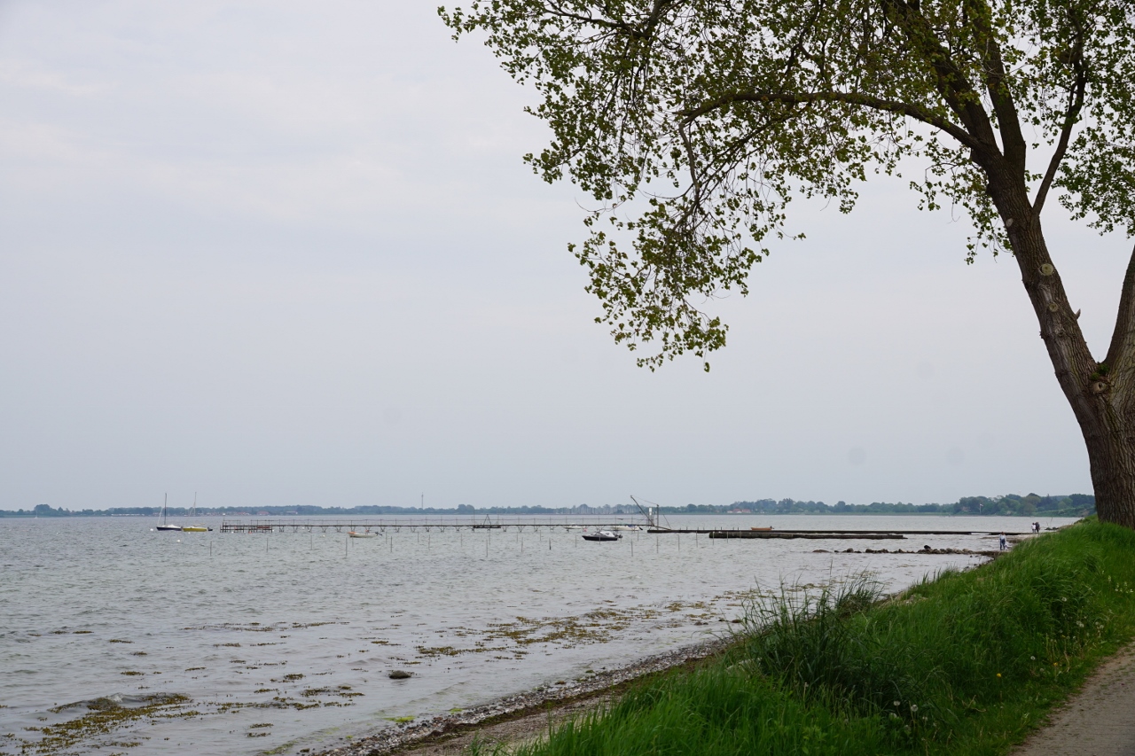 Deich. Ob das den gesamten Weg über so sein wird, bleibt abzuwarten, aber zumindest hier in der Flensburger Förde, an deren Verlauf wir heute entlangradeln,