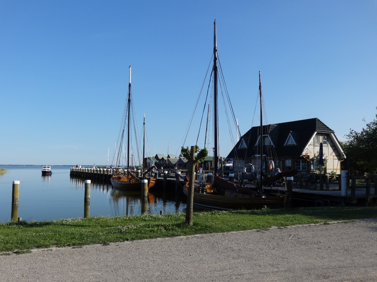 Nach der Dusche geht`s ins Dörfchen und an den Strand, abends geht`s wieder zurück in den Althagener Hafen, dort gibt`s lecker