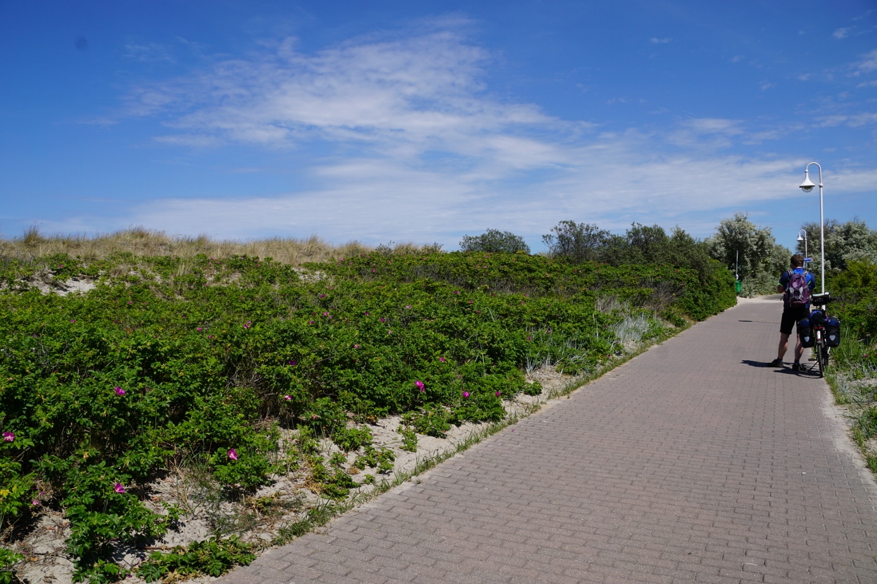 also weiter, streifen Markgrafenheide und kommen in ein ausgedehntes Wald- und Moorgebiet direkt am Meer. Der Weg ist gut, es lässt